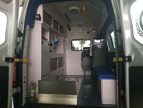 醫(yī)療艙布局:醫(yī)療艙根據(jù)車內(nèi)部空間大小進(jìn)行調(diào)整,以及配備有側(cè)拉門、大開度尾門的特點(diǎn)。采用左右對(duì)稱、前緊后松、左/前設(shè)備、中部病員、右側(cè)陪護(hù)人員的布局,高效利用車內(nèi)空間和上下車通道。頂部為**急救、室內(nèi)照明系統(tǒng)。